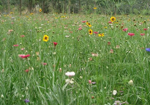 耐旱野花组合品种选择上以耐旱为首选条件,同时兼顾耐热性、耐贫瘠性。在年降水量较少的干旱地区,或者缺乏正常灌溉条件的场地,耐旱野花组合都能顽强生长,并形成良好的耐旱生态小环境,在满足景观需求的同时还能改善局部小区域的生态环境,这些品种生长迅速,自播能力强,不但形成景观的速度要快于多年生组合,而且建植成功后几年内都可自行维持景观效果。