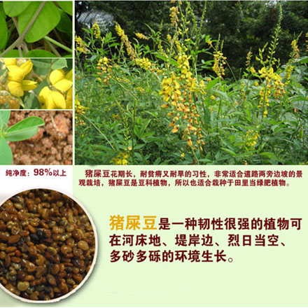 猪屎豆花期长,耐贫瘠又耐旱的习性,非常适合道路两旁边坡的景观栽培,猪屎豆是豆科植物,所以也适合栽种于田里当绿肥植物。