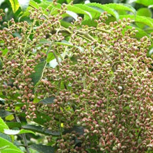 盐肤木(五倍子树、山梧桐、黄瓤树、欺树) Rhus chinensis Mill ,为漆树科盐肤木属落叶小乔木。盐肤木是中国主要经济树种,可供制药和作工业染料的原料。其皮部、种子还可榨油。在园林绿化中,可作为观叶、观 果的树种。花开于8~9月,蜜、粉都很丰富,是良好的蜜源植物。根、叶、花及果均可入 药,有清热解毒、舒筋活络、散瘀止血、涩肠止泻之效。