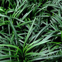 玉龙草为多年生草本,具有块根,根系发达,根长可及20公分以上,乳白色略粗,几无茎,植株矮小,簇生成半球团状,高约10公分。 单叶,丛生,叶片长10~20公分,宽0.2~0.3公分,狭线形,叶基锐,叶尖钝,叶缘粗糙,墨绿色,上下表面光滑,下表面多少带白粉状,脉5~7条。 总状花序,每苞花10朵,花茎直立,淡紫色至白色。 蒴果,径约0.5公分,种子深蓝色。另有白斑变种银纹沿阶草,别称银龙,叶长45~90公分,有多数白斑沿叶脉纵走,叶面有毛不光滑。 以分株法繁殖,每3芽左右为单位分株即可,因根肉质具有养分、水分,分株后如不立即种植亦无妨,在荫处可贮放约一周左右。 生长及分生迅速,栽植地面可迅速长成一片浓密加地毡状的草皮,对水土保持有特别优良之效果。 耐阴性强、且较一般草皮耐践踏,是极佳之地被植材。