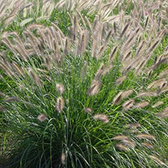 狼尾草生长快,且耐移植,可广泛用于公路护坡、河岸护堤和水土保持等。多年生狼尾草根系较发达, ,具有良好的固土护坡功能。狼尾草的抗寒能力较强,在-20℃时也能安全越冬,越冬存活率在95%以上。正常条件下,狼尾草当年就可抽穗开花。狼尾草的花期较长,花期过后的植株可继续留在田间,作为秋冬季的观赏植物。第二年早春将上一年的老茎秆剪掉,留下约10厘米高的老茬,以利新茎叶的发生。有的狼尾草品种喜湿,适宜在池塘溪流边等潮湿地带种植。在夏季高温干旱时,狼尾草的叶片会卷曲,叶尖发黄,可浇一次透水。一般狼尾草种植3年后,由于植株太大,残存的老茎秆过多,需要进行分栽,使新长出的茎叶更加具有活力。